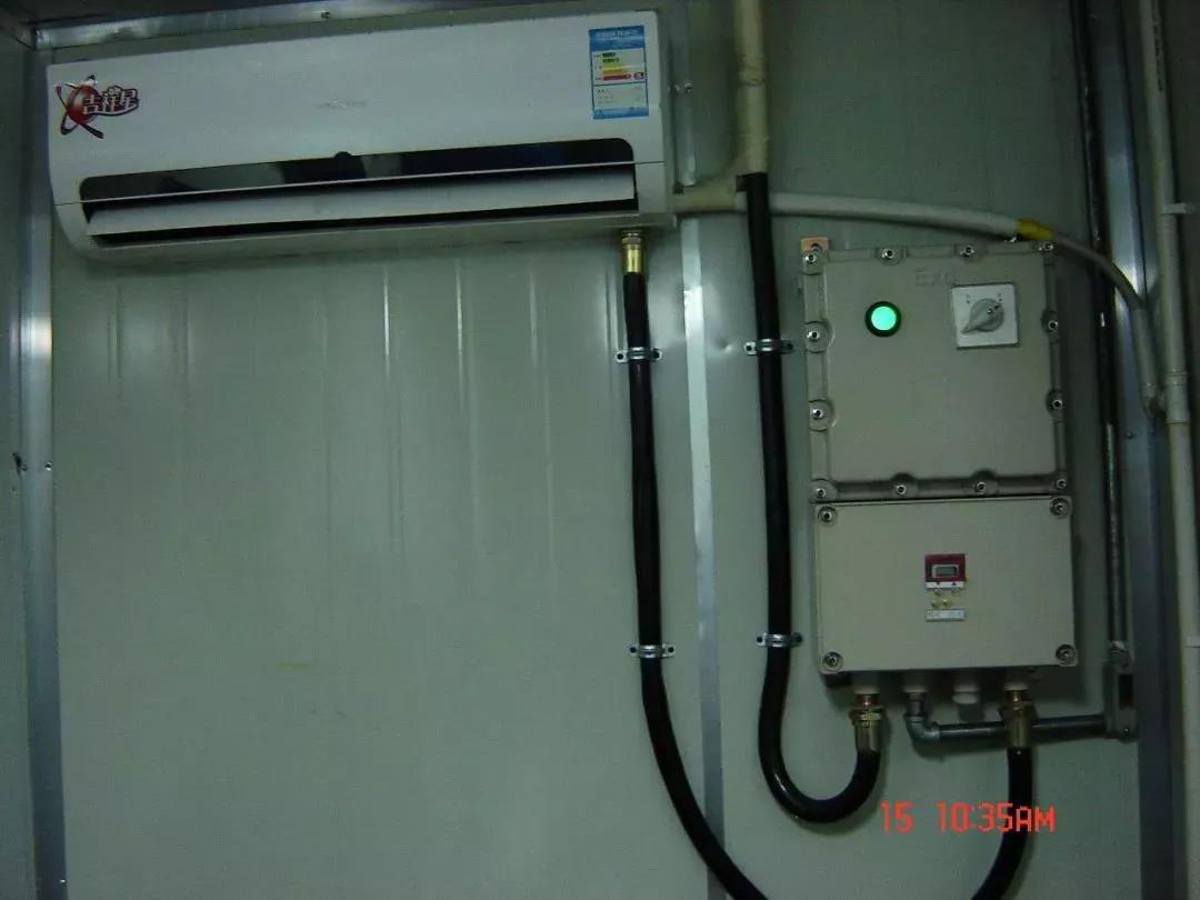 工业防爆空调保持普通空调基础上,对电气系统,包括压缩机、风机、电气线路进行防爆处理。控制线路采用以光耦固态继电器为核心的电气制系统进行整体防爆,原保持原来空调的基本功能下,简化结构,简化操作,使设备在性混合气体环境中能安全使用。