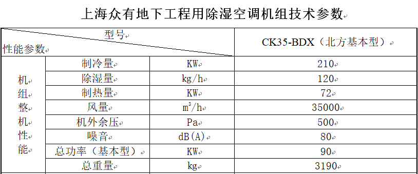 本设计方案选用了我司自主研发的CK35-BDX地下工程用除湿空调机组,共含主机段、送风机段、空气处理段、混风过滤段,每一个环节都选用上等材质,确保性能。