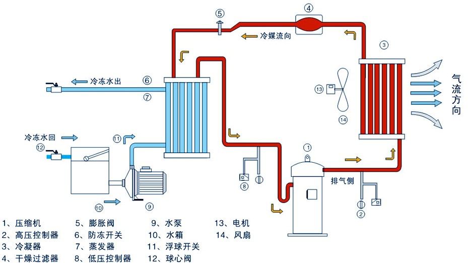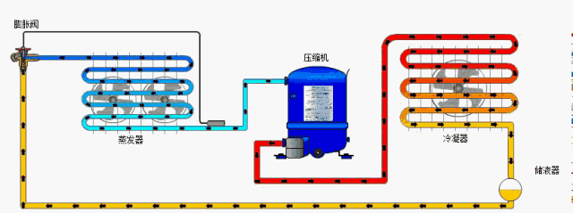 3、输送并推动制冷剂在系统内流动,完成制冷循环。