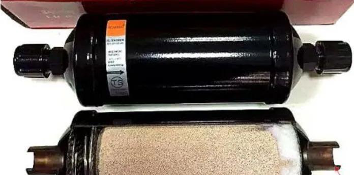 我们用干燥过滤器清除制冷剂中的这些异物,确保系统更有效地工作。干燥过滤器的作用是防止制冷系统吸入有害物质。可以清除制冷剂中的水分,从而防止膨胀阀 的流口上结冰。它还能清除其他固体污染物、腐蚀物和酸。能清除异物颗粒,最大限度防止系统中发生 化学反应。