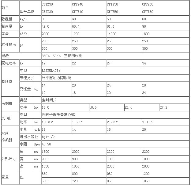 4.人性控制,优化节能,机组除湿能力强,运行效率高,配置高低压、防冻、油压保护、过载保护、压缩机三分钟延时保护,欠逆向保护等多重安全保护,运行安全稳定。