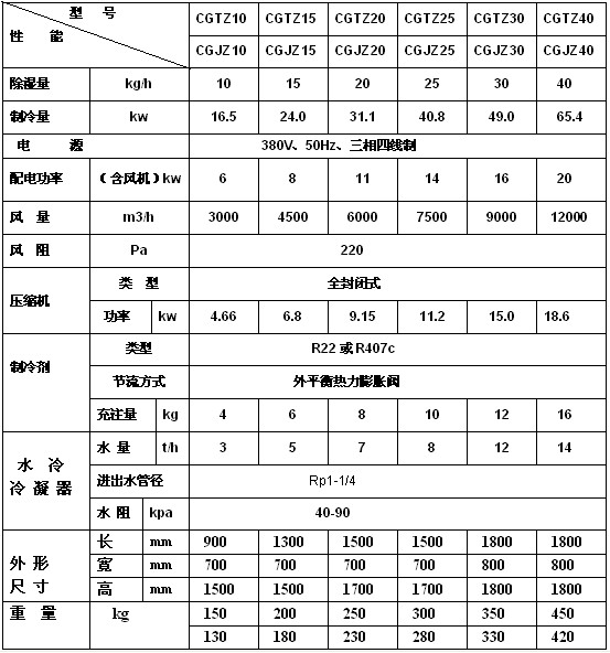 水冷调温型管道除湿机技术指标: